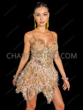 Sparkling Gold Sequin Salsa Samba Fringe Dress