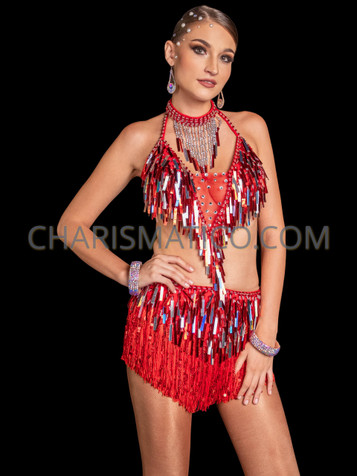 Stunning Mirror Red Sequin Salsa Dance Dress