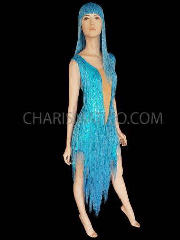 'Take Me Home" Beaded Fringed Cher Diva Wig And Dress Set