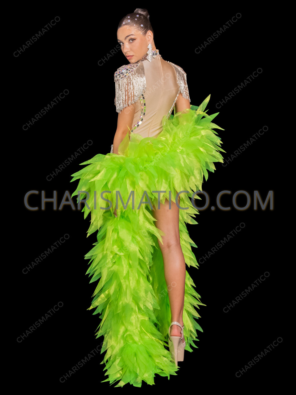 Step into the spotlight with our Vivid Neon Green Organza Petal Leaf-Style Boa, a show-stopping statement piece designed to command attention. Handcrafted with layers of lightweight organza petals, this luxurious boa creates dramatic volume and captivating movement under stage lights. The vivid neon green hue radiates high-energy glamour, making it the perfect accent for showgirls, drag performers, and carnival queens alike. Whether draped over a sequin bodysuit or paired with a crystal corset, this boa adds instant flair and modern elegance to any performance look. Lightweight yet voluminous, it ensures both comfort and maximum visual impact on stage or runway.