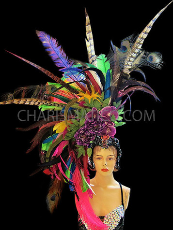 Need one headdress that will go with anything? This flamboyant piece is sure to fit the bill. Every color of the rainbow, multiple feather styles, flowers, beading and glitter... it is all here. Why invest in several headdresses when one will do the job?